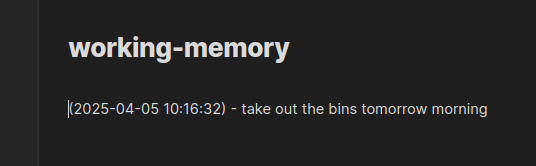 You can find the repository here. Running the command tomm_cli with the flag --remember will write whatever text you input to a file in Obsidian. For me, this means I can forget about it - all I need to remember is to check the Obsidian file regularly.